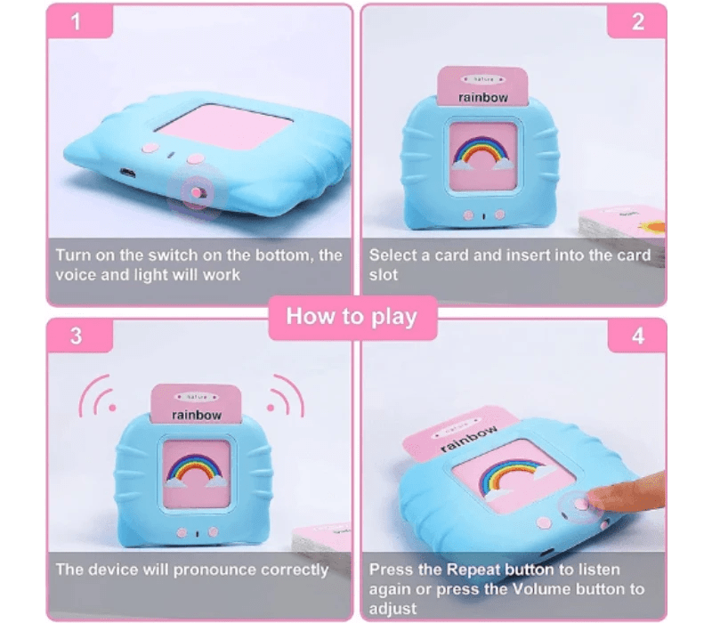 بطاقات فلاش قارئ كروت لتعليم الأطفال لعبة للتعلم بالصوت والصورة قابلة للشحن عربى وانجليزى| الوان متعددة